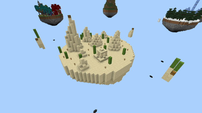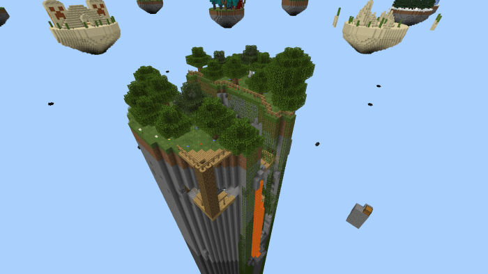 In this map, you start on a small floating island with limited resources and need to explore other islands from different biomes, each with their own structures, challenges and secrets. You can find everything from an island of ice to an island with a hellish fortress. But be careful, as danger is lurking around every corner. You will have to face monsters, traps and puzzles to progress through the map and unlock new items and rewards. And if you need extra help, you can visit Shop Island, a special store where you can buy useful items with collected resources.