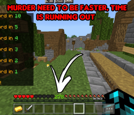 Innocents: Need to survive 5 minutes, before he's caught by Murder! They can hide in houses, run to make gold for a bow or waiting.