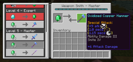 Ability Damage Enchantment on Copper Hammer in Weapon Smith villager trade