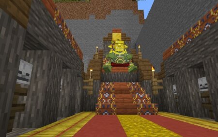 The boss himself sits on the throne and sleeps, but if you get too close to him in survival mode, he will wake up and immediately start attacking!
