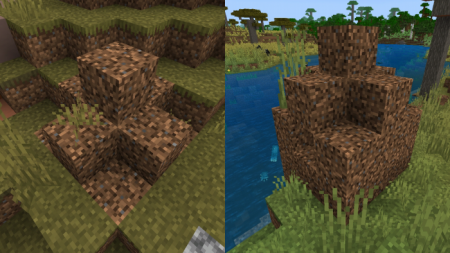 Coarse Dirt Pile: (10 variants) Generate in Plains, Forest, Flower forest, Birch forest, Roofed forest, Swamp, Jungle, Taiga, Badlands, & Savanna surface.