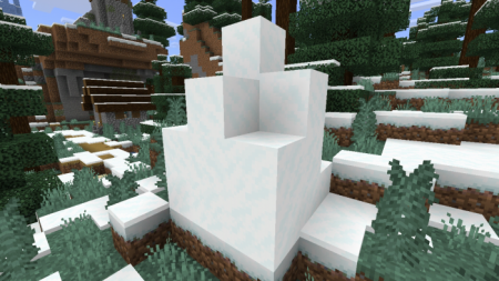 Snow Pile: (8 variants) Generate in Snowy tundra, Snowy taiga, Grove, Snowy slopes, Frozen peaks, Snowy Beach, & Frozen river surface.