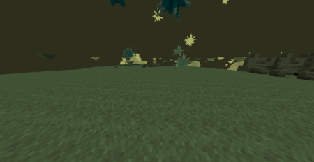Glowing Grasslands are islands covered with various plants and large flowers which illuminate the terrain. Fireflies drift about in the air.