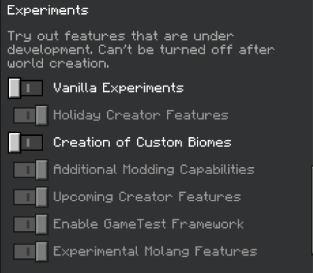 - To Launch this addon you will need all of These Experimental Toggles ON. And enable the Behavior Pack.
