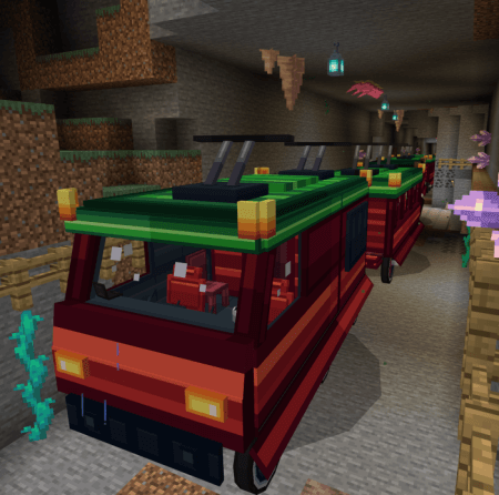 Have you ever wanted to add a new transport system to your world, like a subway or a simple train station? Then this addon is perfect for you! This simplistic styled red train has 4 wagons with a locomotive that controls them.