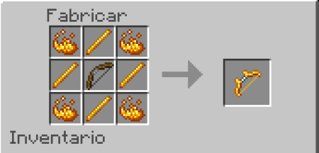 The blaze is one of the most annoying mobs in the game, because now you can feel what it feels like thanks to this bow that when launching an arrow and hitting the ground or your target will generate fire in a radius of 3 blocks burning and killing everything in that place.