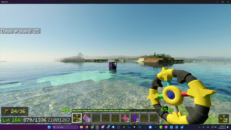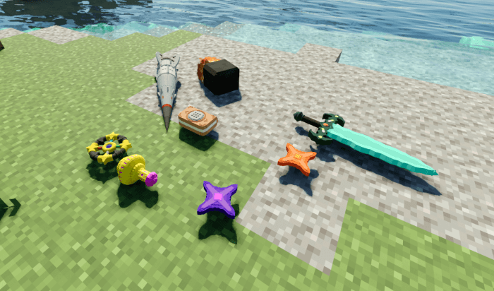 It is a sword with the power of command block, normal attack is 32 damage, you can press item to use beam shooting skill, sit down to defend