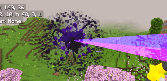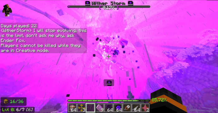 Wither Storm begins to grow more tentacles and from its eyes will emit a purple light that will absorb everything.