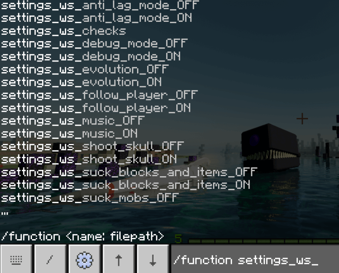 You can also use the command to change some Wither Storm behavior and Add-on functionality, which is the command /function settings_ws