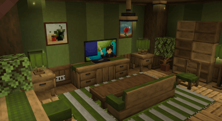 And no, this is not just a furniture add-on, it is an add-on which has the function of giving you extensive customization of your furniture and decorations, with support for the 16 vanilla MC colors, VFX effects on some blocks, connectable blocks and much more