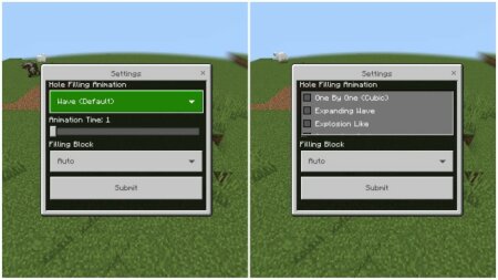The Hole Filler Add-on introduces a new item to Minecraft Bedrock Edition designed to instantly fill in holes created by TNT blasts, creeper explosions, and other destruction. Simply throw the Hole Filler item into any crater, and it will quickly fill the space with blocks.