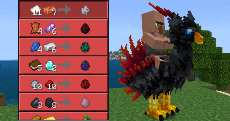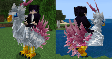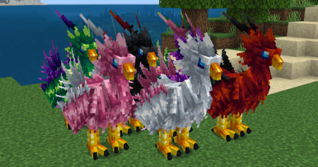 Welcome to the world of Filolials! This addon brings magical creatures in various colors. Find them in different biomes, trade with NPCs, and take care of your own Filolial. Feed it, help it grow, and enjoy its speed and impressive abilities. Get ready to embark on a unique adventure with your new loyal Filolial companions!