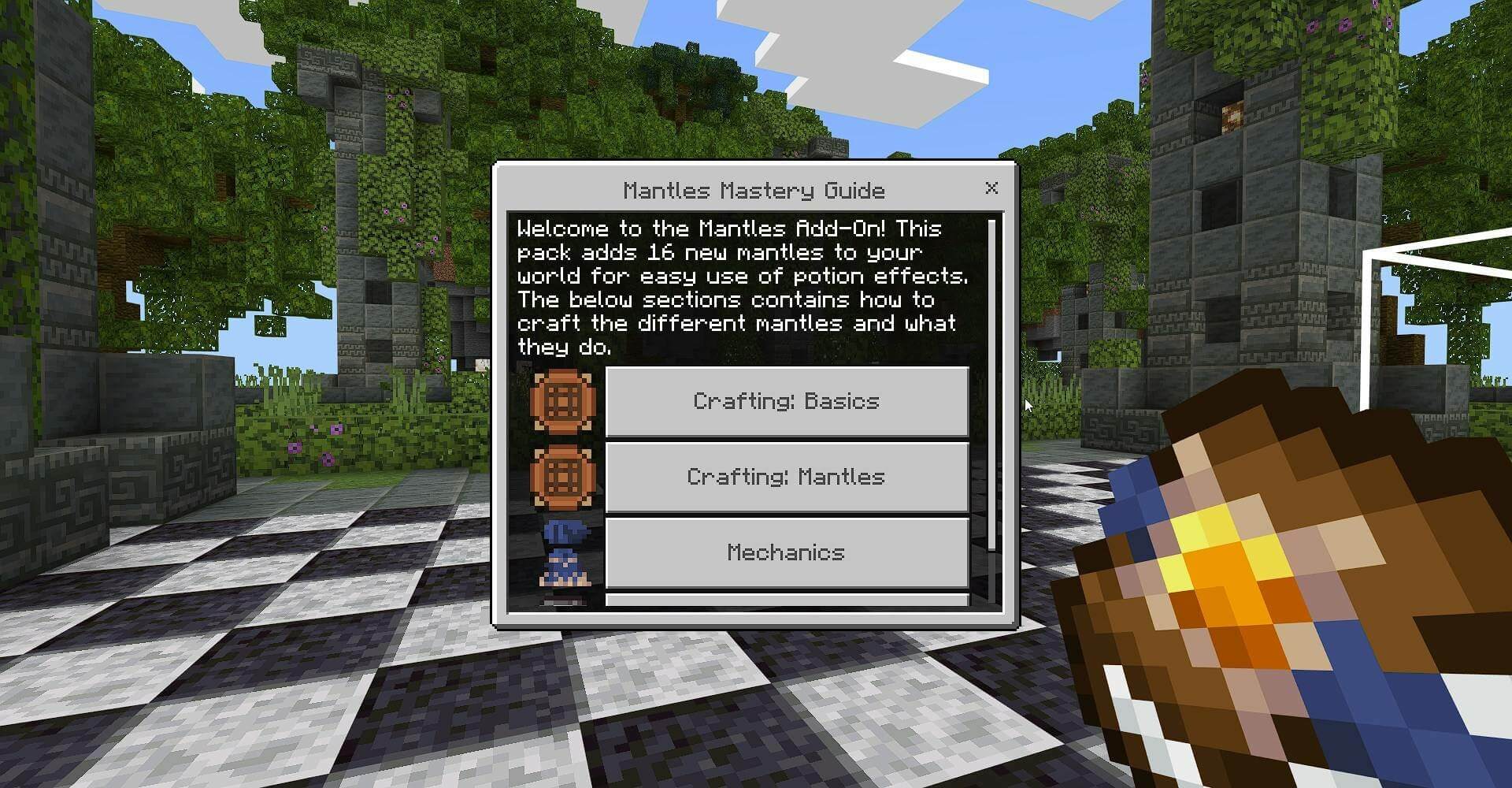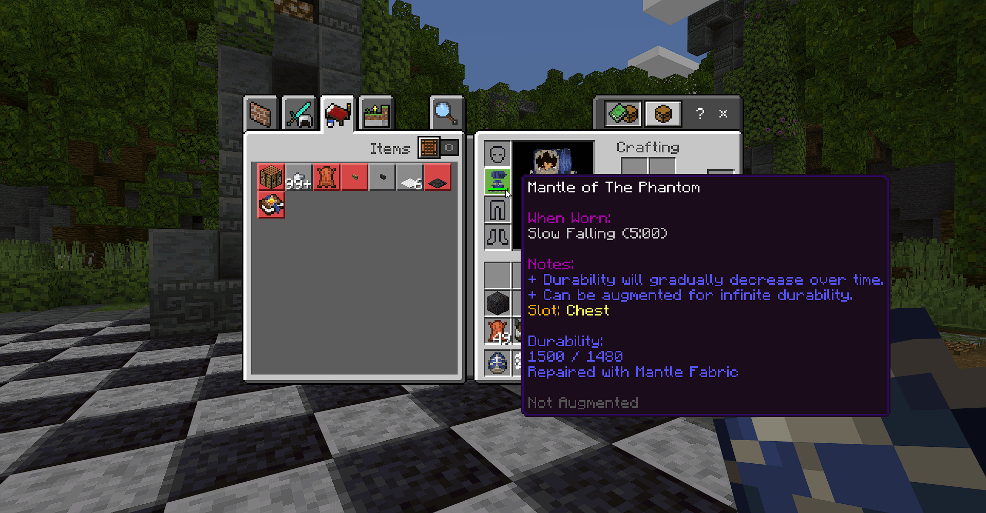 There are currently 16 Mantles associated with a potion effect. When equipped, the mantle will give you a potion effect until it breaks. They can be repaired with the materials used to craft them or even enchanted with unbreaking to reduce the time it takes to break.