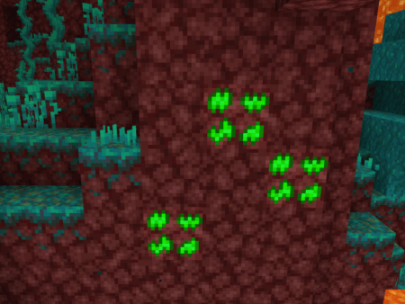 The Nether has also seen plenty of new features and changes all over it, with plenty of new foliage to be found! You can find side variants of the fungus in the forests similar to the mushrooms of the Overworld, and those could make for a good decoration alongside the new Sanguine Sprouts found in Crimson Forests. Some less friendly plants to be found include the Wither Roses which now generate in Soulsand Valleys (and can be used to brew Decay potions!) and the Volatile Shroom, a mushroom that will EXPLODE if you step on it so watch your step! Crimson and Warped Forests will also respectively contain Dragon Cherries and Corrupted Melons, which are some new plants that you can harvest and eat as food, but watch out since they can burn and poison you if you come too close! You can regrow those crops using the meal of a Wither Skeleton's bone, not with normal bone meal, so oeep that in mind.