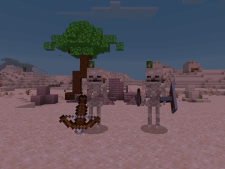 Desert and snow biomes in your world may be of opposing elements and climates, but they both receive some notable updates in this addon. When travelling through the frostiest parts of your world at night, be cautious of the Frost Bite, a powerful new Spider variant that can conjure huge icicles out of the ground that can hurt you pretty badly! But if you manage to survive those vicious attacks, you may stumble upon a small new Graveyard structure, which may house some secrets that you can uncover by brushing suspicious-looking blocks away with a Brush! In hotter biomes, the Fried is a new variant of the skeleton that can cause you some problems by attacking with either an axe or crossbow, and they also don't burn in the sunlight which isn't great. Deserts and beaches can also spawn Palm Trees, which you can either chop down to utilise the new Palm wood set for building with or shatter the coconuts hanging from them with an axe to get some exotic food!
