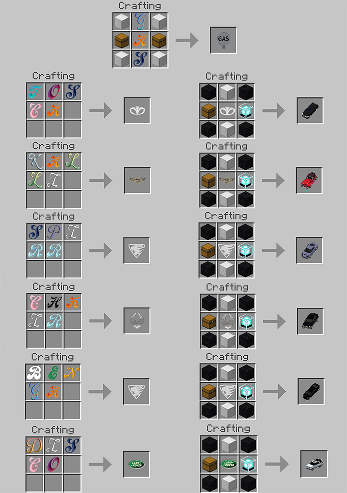 - Each vehicle requires specific materials, which must be combined according to the crafting image provided below.