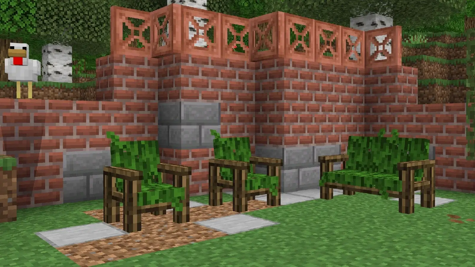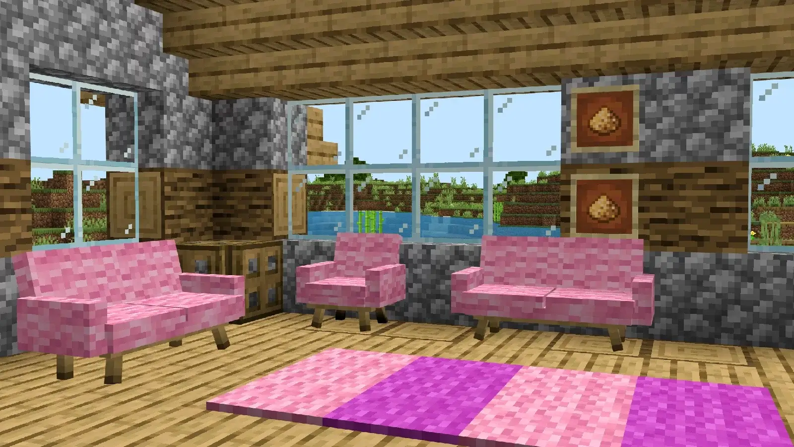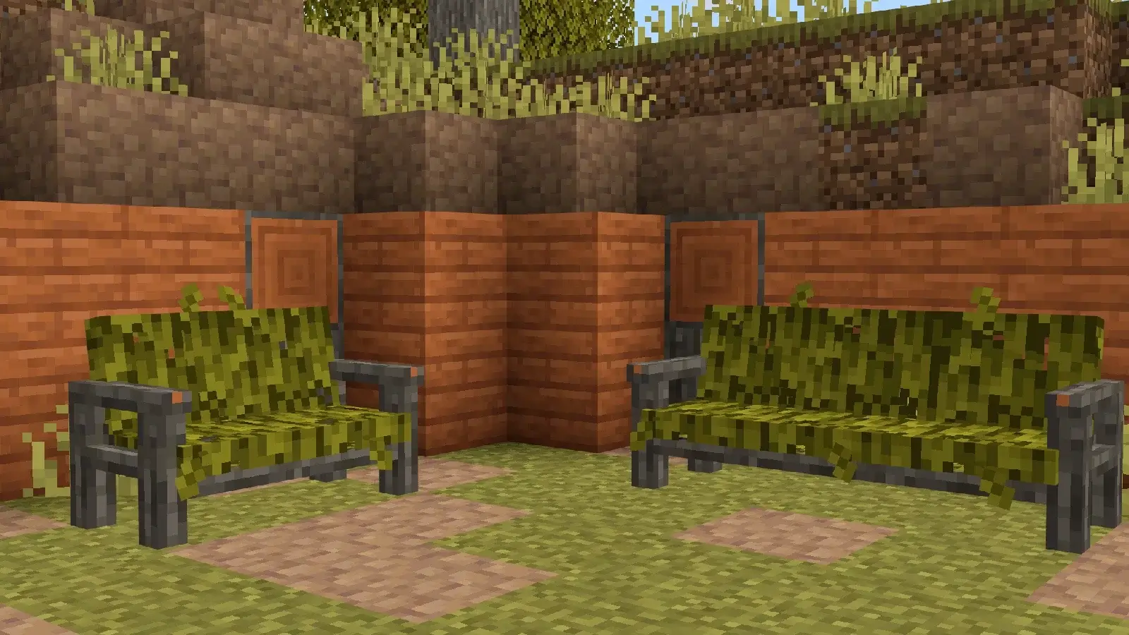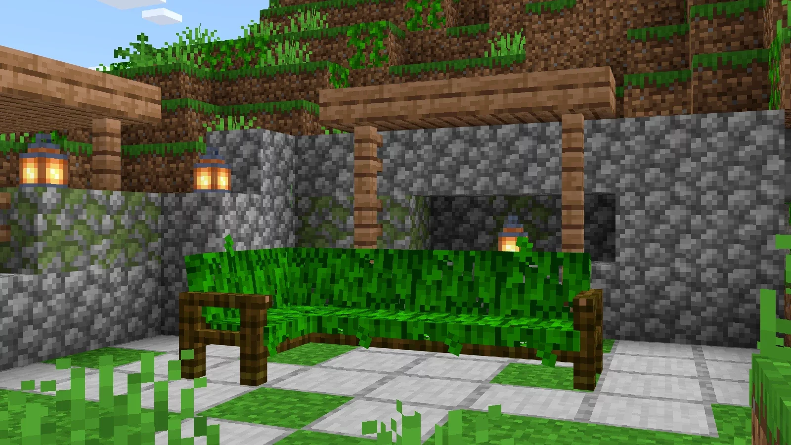 Add over 20 sofas to Bedrock with fully craftable, modular variants. When you place sofas next to each other, their geometry updates automatically to form larger shapes. Includes models from Modern Furniture and Feudal Furniture with color and wood-type variants.