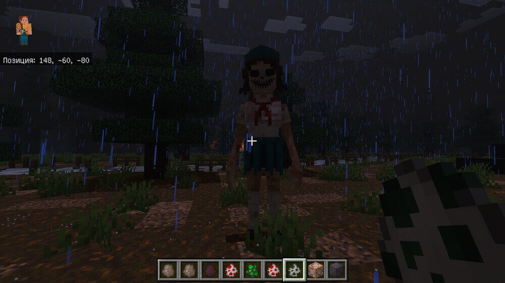 Once he joyfully marched in front of the squad, loudly beating out the rhythm of camp songs. Now this pioneer has become a creepy creature with gray-green rotting skin and empty, lifeless eyes. He slowly walks through the empty corridors of the camp, beating the drum, creating an ominous rhythm that makes your skin crawl.