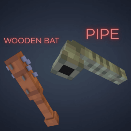 - Wooden bat: It has not very strong damage, only 5 units, but it is quite easy to create in survival and definitely will not become a nuisance in battle