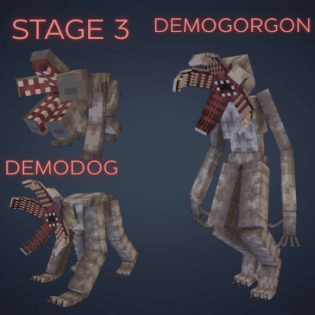 Demodog: Very dangerous mob, has 90 health, high movement speed (also climbs walls)
