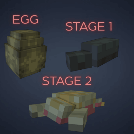 Egg: also spawns in the regular Minecraft world, has 12 health, after 1 minute the first phase of the demopes will hatch from it.