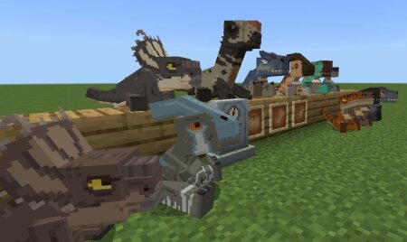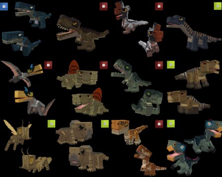 This addon includes over 50 dinosaurs and creatures from the Jurassic saga, from both the movies and the animated series, this time with chubbier and cuter designs that will work as your pets.
