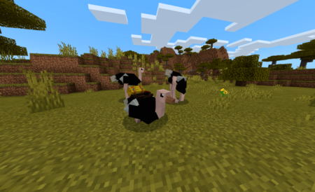 Ostriches are neutral, this means that it will attack you if you attack it first. Can be tamed and serves as a mount, jumps high and runs fast !!