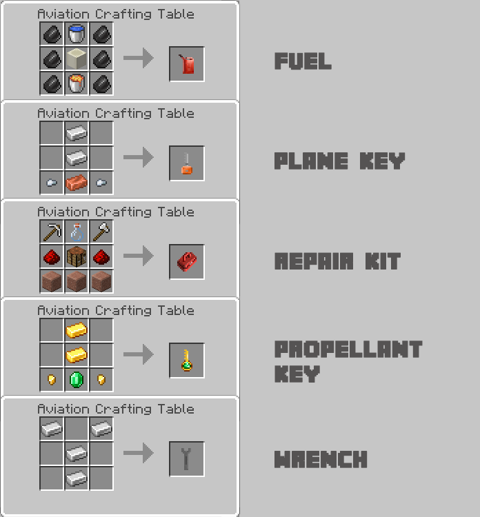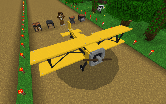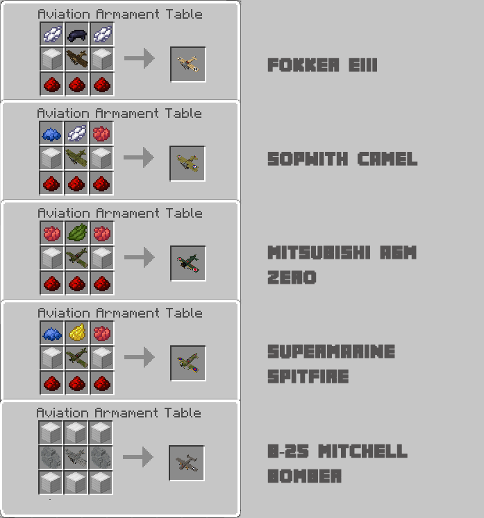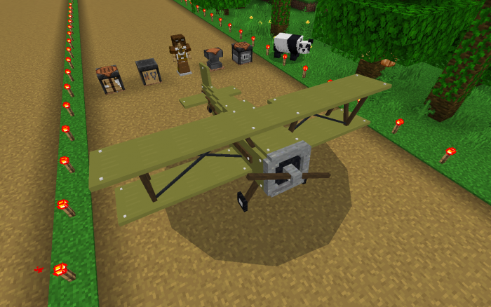 Hi! This is the first plane addon that allows you to CRAFT, IMPROVE AND REPAIR PLANES, with , fighter airplanes, ammo, bombs, structures, realms support AND NOW with NEW FUEL SYSTEM!