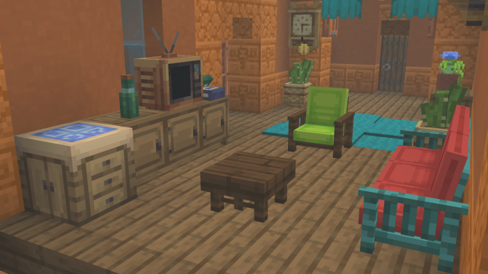 FurniDeco adds 25 pieces of functional, decorative and unique-looking furniture that fit with the vanilla style. With more than 80 variants in total, FurniDeco gives you endless options to furniture & decorate your builds!