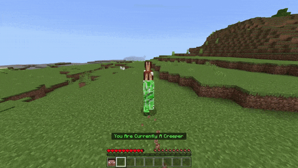 Also, your action bar (right above your hotbar) will show "You Are Currently A Creeper" when in Creeper form.