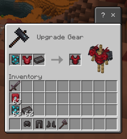 - By using the SMITHING TABLE, you can see the upgrade recipes (you need the "Leather Plus" addon)