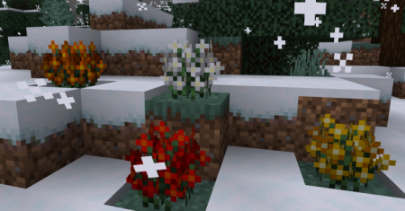 Each plant has been hand-crafted, with special attention applied to their appearance and behaviors to ensure they behave as identical to vanilla plants as possible. All of the plants included in this addon will generate naturally in your worlds and different varieties can be found across different biomes in your world!