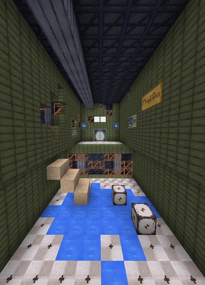 Some blocks you’ll find in the game easily, but others had to replace existing blocks (such as the lights, the indicator, both gels, the button, the camera, the doors, the radio, etc.) The new blocks annoyingly let light through so sorry about that.