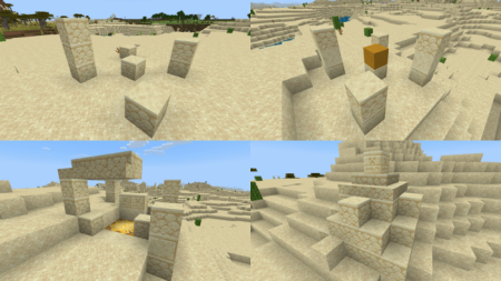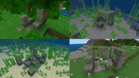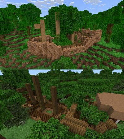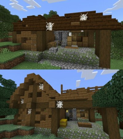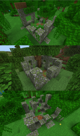 Abandoned & Ruin Structures is a mod that generates new structures such as an abandoned dungeon and ruin houses. Structures generate in their specific biome and each structure had a different distribution. Small structures had a higher chance to spawn, and large structures had a lower chance to spawn. Not all structures is can be found in surface, some can generate in ocean floor or underground. Most of the structures had a different varieties, and some structures had a hidden mob spawner, loot chest & ore.