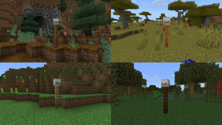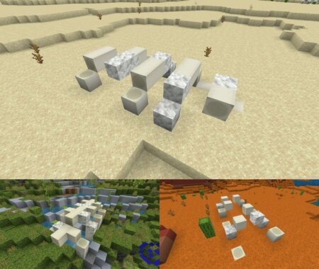 Generate in Plains, Forest, Flower Forest, Birch Forest, Roofed Forest, Swamp, Jungle, Snowy Tundra, Taiga, Snowy Taiga, Meadow, Grove, Snowy Slopes, Stony Peaks, Jagged Peaks, Extreme Hills, Mesa, & Savanna surface.