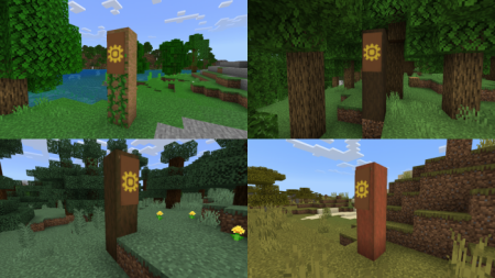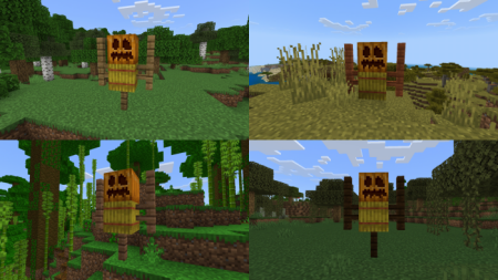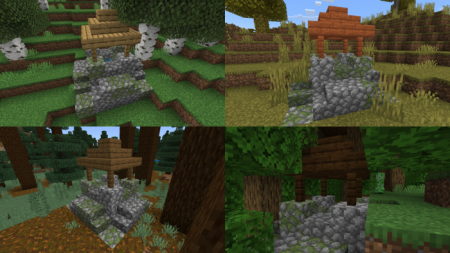 Generate in Forest, Flower Forest, Birch Forest, Roofed Forest, Swamp, Jungle, Taiga, Snowy Taiga, & Savanna surface.