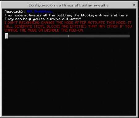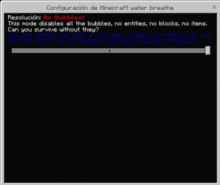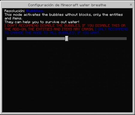 Now, the 4 different bubbles has 4 different textures, and now only exist the bubbles items, the 4 natural bubbles can be obtained with the bubble blocks and the bubbles that spawn on the water, also, you can craft their and the "Earth breathing" items, you can see their crafting recipe on the crafting table, on the section "nature" and "equipment".