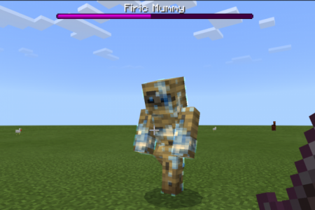Inside the pyramid is the firic mummy that waits for you. He is immovable, will keep blasting out shockwaves to send you flying a bit back, and will shoot intense rounds of fireballs at you. He has 600 health and will be granted a shield at half health.