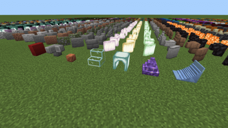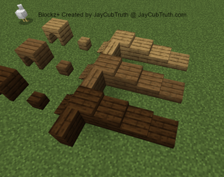 Blockz+ Addon includes over TWO THOUSAND new decorative blocks! They come in 17 unique shapes and can be crafted in nearly every material! You can also rotate them any direction you want. It also features vertical slabs, concrete stairs/slabs, vertical carpet, and diagonal iron bars!
