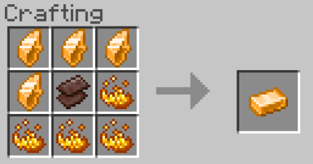 Coronite is a rare material found that can only be found inside Blackstone hidden in the deepest parts of the Nether! Coronite Ore drops Coronite Fragments which can be crafted into Coronite Ingots like so: