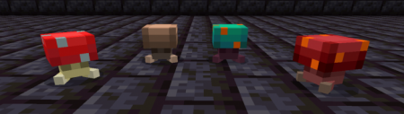 Shroomans: Shroomans are incredibly rare to find, and are timid around people. Can be tamed with Mushrooms as long as they match their color. Be careful though, pigs love to eat Red and Brown Shroomans, and Hoglins love Crimson Shroomans. They are repelled by Warped Shroomans, however.