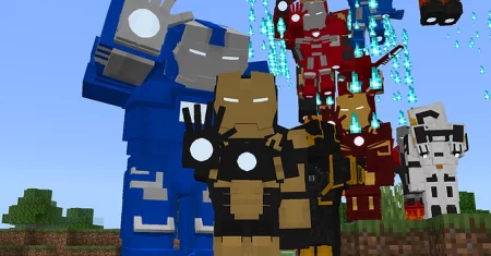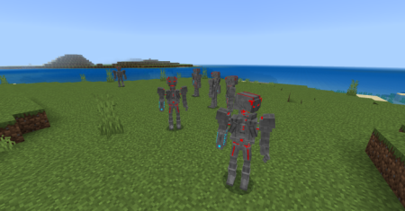 They will appear in the world of Minecraft at night, they will attack the player with their repulsors, when you destroy them they will release a lot of iron ingots and a chance to release vibranium.