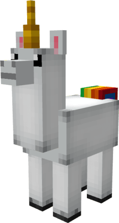 - Llamacorn is a creature that mixes llama with unicorn, which can be found in flowering biomes can serve as a mount, for a prolonged time, when killed they can drop meat and leather.