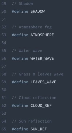 • Mobile : go to this shader file (Android > data > com.mojang.minrcraftpe > resourcepack)> shaders > glsl > lib > open "option.h" there is a way to use this option there.