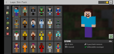 Have you ever wanted to wear the skins of your Lego Minecraft characters? With this Skin Pack you can do it!This skin pack replicates all Lego Minecraft skins, even Lego Minecraft Dungeons!