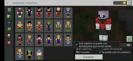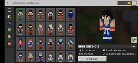 This pack contains Dragon Ball Super and Dragon Ball Z Skins. More Than 76 Skins!!