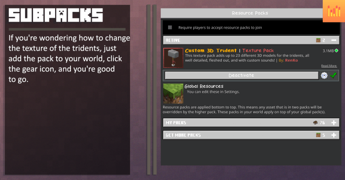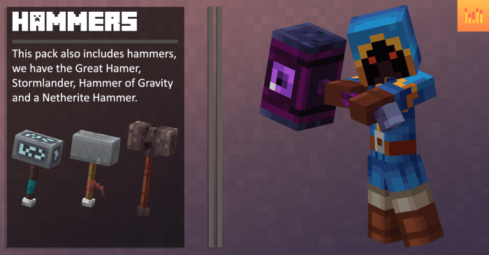 We all love Minecraft 3D models! Well here you have it, a Texture Pack that changes the texture of the trident the weapons of Minecraft Dungeons. Also, the hammers have their big and small version