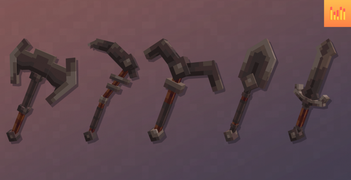 Have you ever wanted to have something more than simple pixels as your pickaxe of all life, or your most reliable sword? Well I do, and several times and if you too this pack is for you.After a lot of work I brought 3D weapons for Minecraft Bedrock! Each tool has its own individual 3D model, none of them are repeated, Hope you enjoy!New 3D Tools for your Minecraft worlds, pickaxes, shovels, hoes, swords and axes each with their respective 3D model.