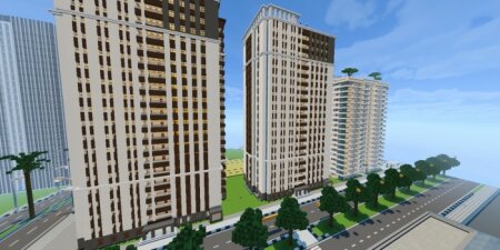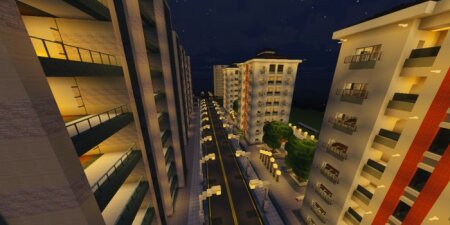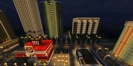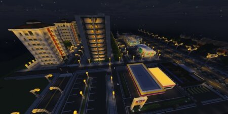 Полноценный современный город в Майнкрафт! Красивые улицы, вечерние огни, небоскребы, отели и рестораны. Исследуйте и Наслаждайтесь!