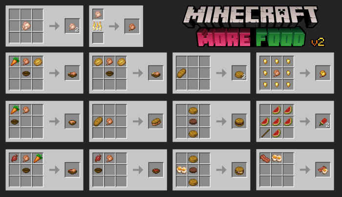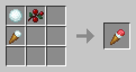 Аддон включает в ваш мир Майнкрафт больше продуктов и рецептов. Теперь вы сможете получать жареные яйца, мороженое, бургеры и многое другое из продуктов, которым не могли найти применение